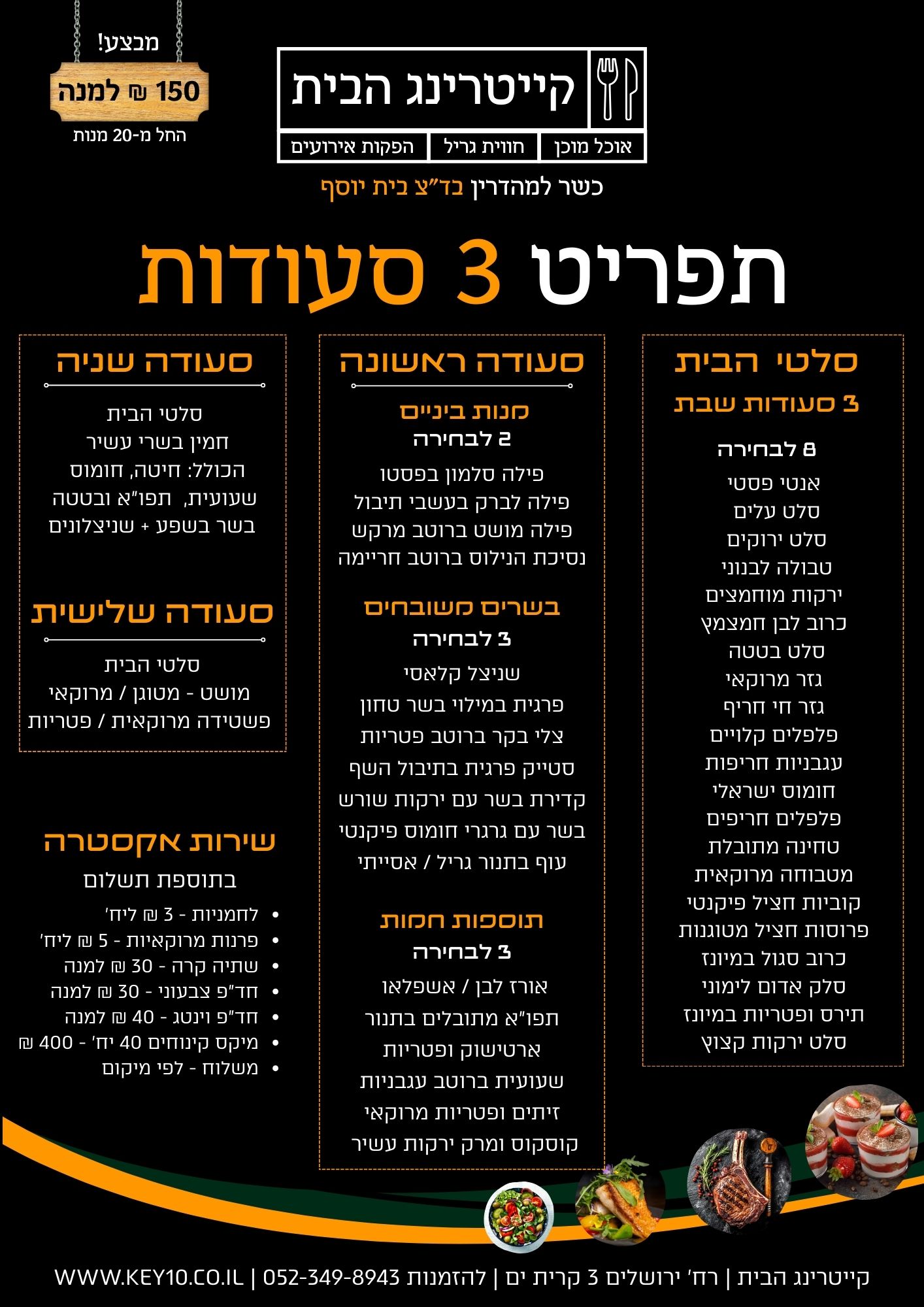 ✔️ תפריט מסודר לכל סעודה
